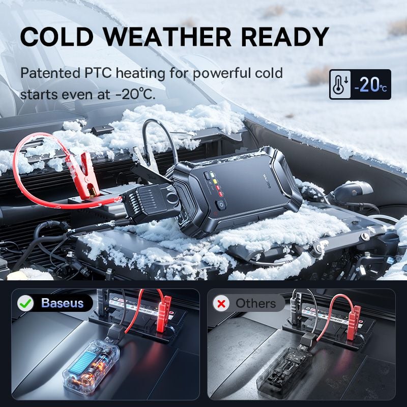 Tính năng Kích Bình Ô Tô Baseus PrimeTrip VJ1 (12000mAh, 5000A Peak Current, 10 Safety Protections, 12V Models Covered, Patented PTC Heating)
