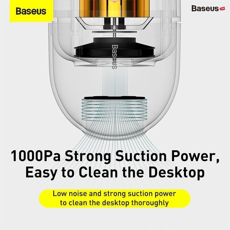 Tính năng cơ bản Máy hút bụi mini cầm tay Baseus C2 Desktop Capsule Vacuum Cleaner (6W, 1000 Pa, Pin sạc 900mAh)